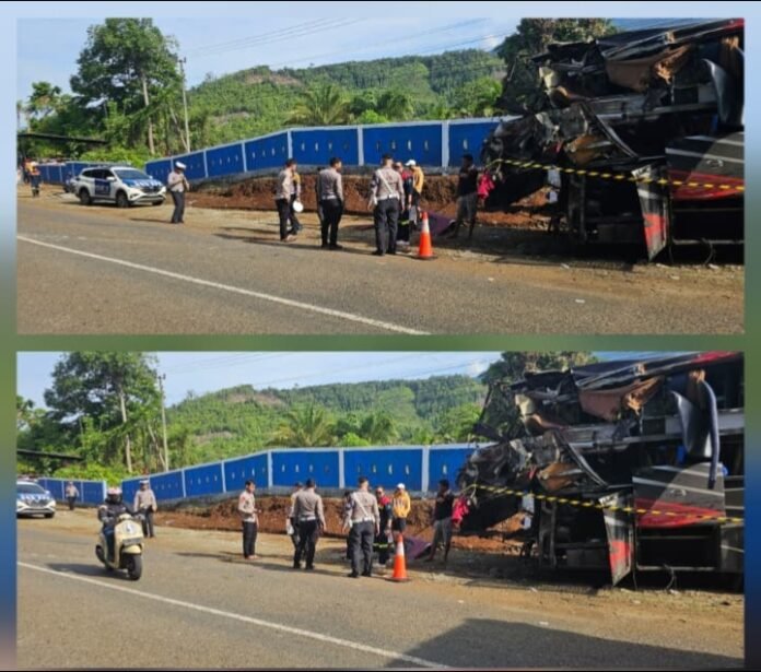 Luwu Timur, batarapos.com – Kecelakaan lalu lintas (laka lantas) tunggal terjadi di Jalan Trans Sulawesi, Desa Laskap, Kecamatan Malili, Kabupaten Luwu Timur, Senin 29 Desember 2025, sekitar pukul 05.30 Wita.