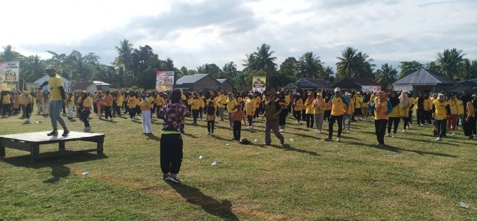 Luwu Utara, batarapos.com – Lapangan Andi Pattiware, di desa Pattimang, kecamatan Malangke, kabupaten Luwu Utara, menguning akibat ratusan Peserta megikuti senam massal, Jumat (18/08/2023).