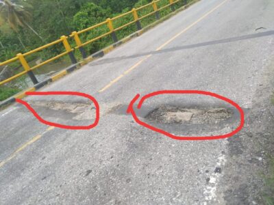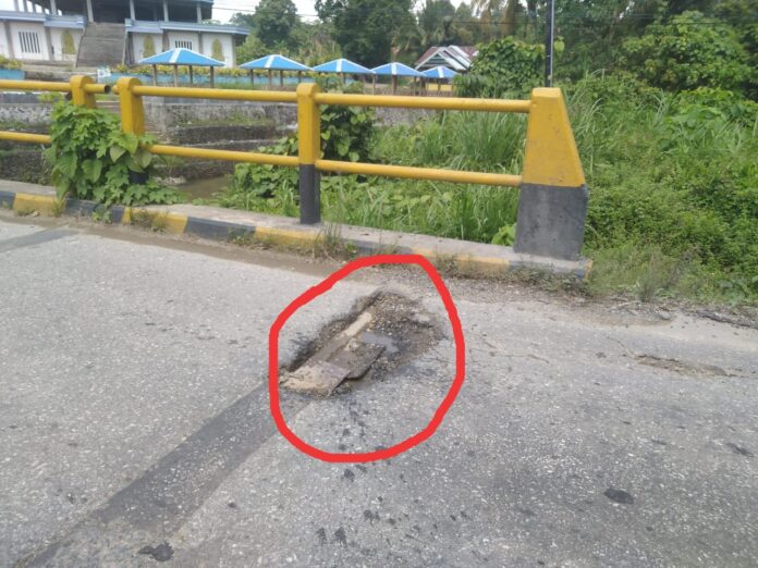 Luwu Timur, batarapos.com – Lubang jalan yang berada pada dua sisi sambungan badan Jembatan Desa Burau, kecamatan Burau, Kabupaten Luwu Timur dengan Kabupaten Luwu Utara mengancam jiwa setiap pengguna jalan.