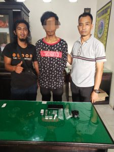 Identitas para tersangka penyalagunaan narkotika jenis Sabu tersebut yang berinisial IRF (17), SUW (27), barang bukti satu sachet plastik bening yang berisi butiran kristal bening yang diduga sabu, satu buah handphone merek samsung, dan satu unit motor Honda CBR warna merah hitam tanpa nomor polisi.