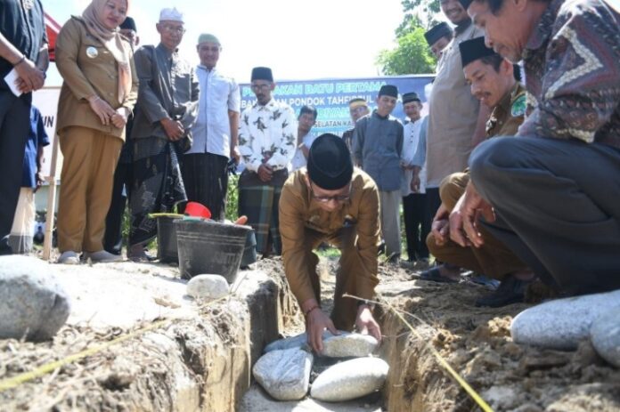 Meski tanpa kehadiran Bupati, peletakan batu pertama pembangunan tahfidz Qur’an tetap berjalan lancar.