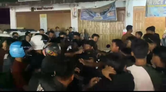 ” Sudah mabuk semua mi itu, jadi biar sesama mereka yang saling senggol berkelahi lagi,” Teriak warga ditengah kerumunan.