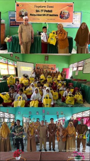 Dalam kegiatan tersebut, tim Masyarakat SM-3T Institute, Uly Rezki Amalia Rahman, S.Pd.,Gr hadir langsung untuk menyalurkan 50 paket tas sekolah lengkap dengan perlengkapan alat tulis kepada para siswa.