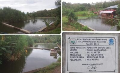 Namun inilah fakta nyata yang tidak dapat dipungkiri dengan menggunakan anggaran keuangan negara senilai Rp.126.918.000 bersumber APBN Dana Desa. Telah mampu menuntaskan pekerjaan Embung berdiameter panjang 31 meter x lebar 13 meter dengan kedalaman 3 meter lebih, didusun Maroanging dengan hasil yang sangat baik serta tidak meragukan dapat dinikmati oleh masyarakat Desa Waekeccee setiap saat.