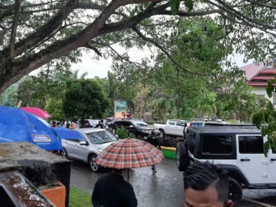 Dari pantauan awak media, massa yang yang menyebar itu ada yang berteduh di bawah pohon atau di gedung kantor daerah, namun tak sedikit yang rela kehujanan didepan kantor KPU Luwu Utara.