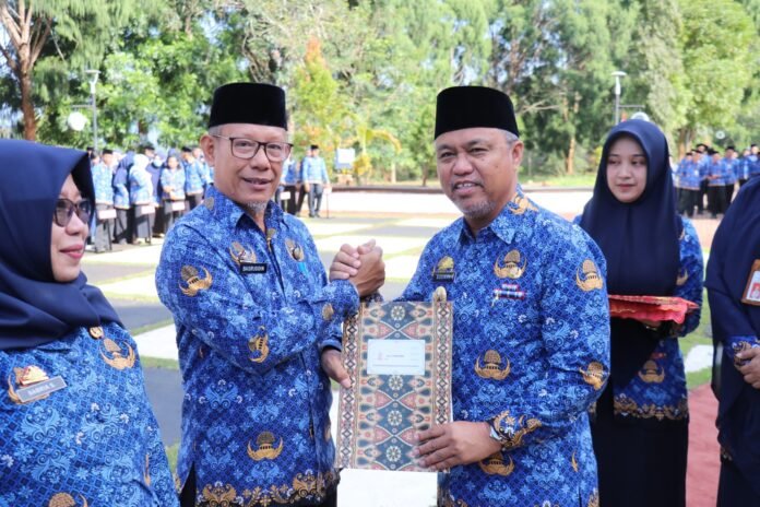 Luwu Timur, batarapos.com – Bupati Luwu Timur, H. Budiman serahkan Surat Keputusan (SK) Pensiun BUP dan Meninggal TMT 1 Oktober 2023 kepada 10 Pegawai Negeri Sipil (PNS), usai Upacara Hari Kesadaran Nasional (HKN), di Halaman Kantor Bupati, Senin (18/09/2023).