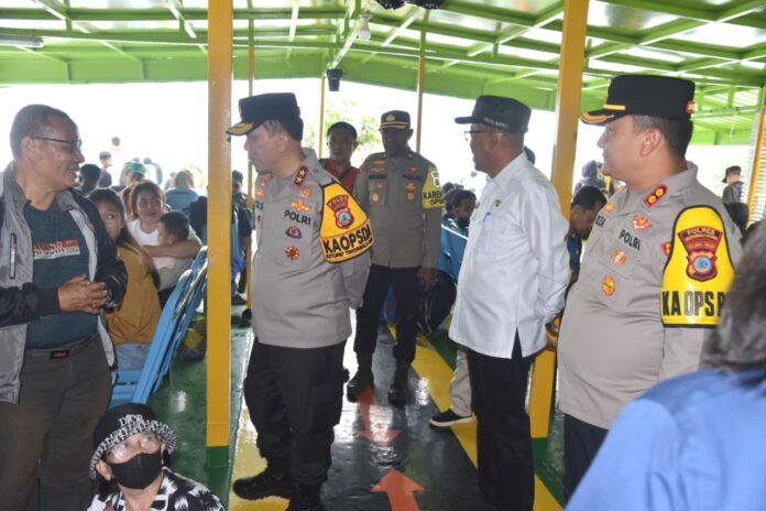 “ Untuk penumpang di pelabuhan fery Kolonodale tidak terlalu padat, semuanya bisa terkendali, kesediaan sarana penyeberangan baik itu kapal fery maupun kapal kayu semuanya siap untuk melayani penumpang. Alhammdulilah untuk hari ini penumpang cukup banyak tetapi masih bisa terlayani dengan baik, ” ujar Kapolda.