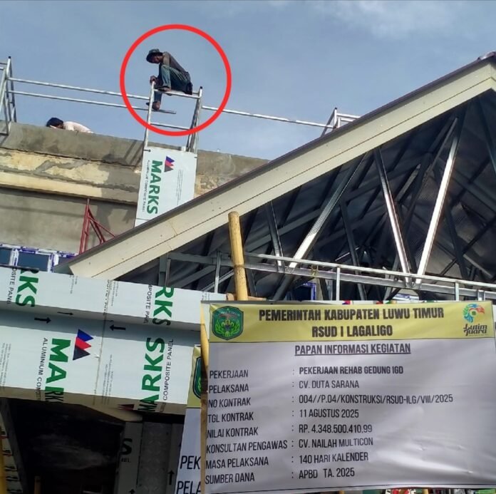 Proyek rehab gedung IGD RSUD I Lagaligo senilai Rp. 4.348.500.410.99,- bersumber dari APBD Luwu Timur T.A 2025 yang dikelola oleh CV. Duta Sarana diduga tidak menerapkan standar K3 terhadap karyawan.
