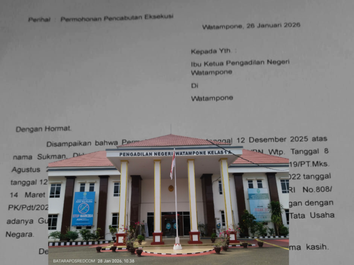 Sementara itu konfirmasi Jurusita Pengadilan Negeri Watampone terkait kemunculan surat permohonan pencabutan eksekusi dibenarkan Rusdi Yanto, ia mengaku surat tersebut dibuat di kantor Pengadilan Negeri Watampone. Saat Aanmaning senin 26 Januari 2026.