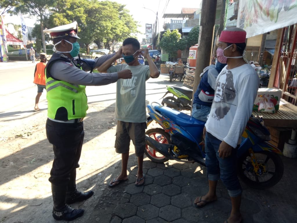 “Kepada pengendara yang sedang melintas di depan pos dibagikan masker. Gunakan masker ketika di luar rumah saat beraktivitas,” ungkapnya.