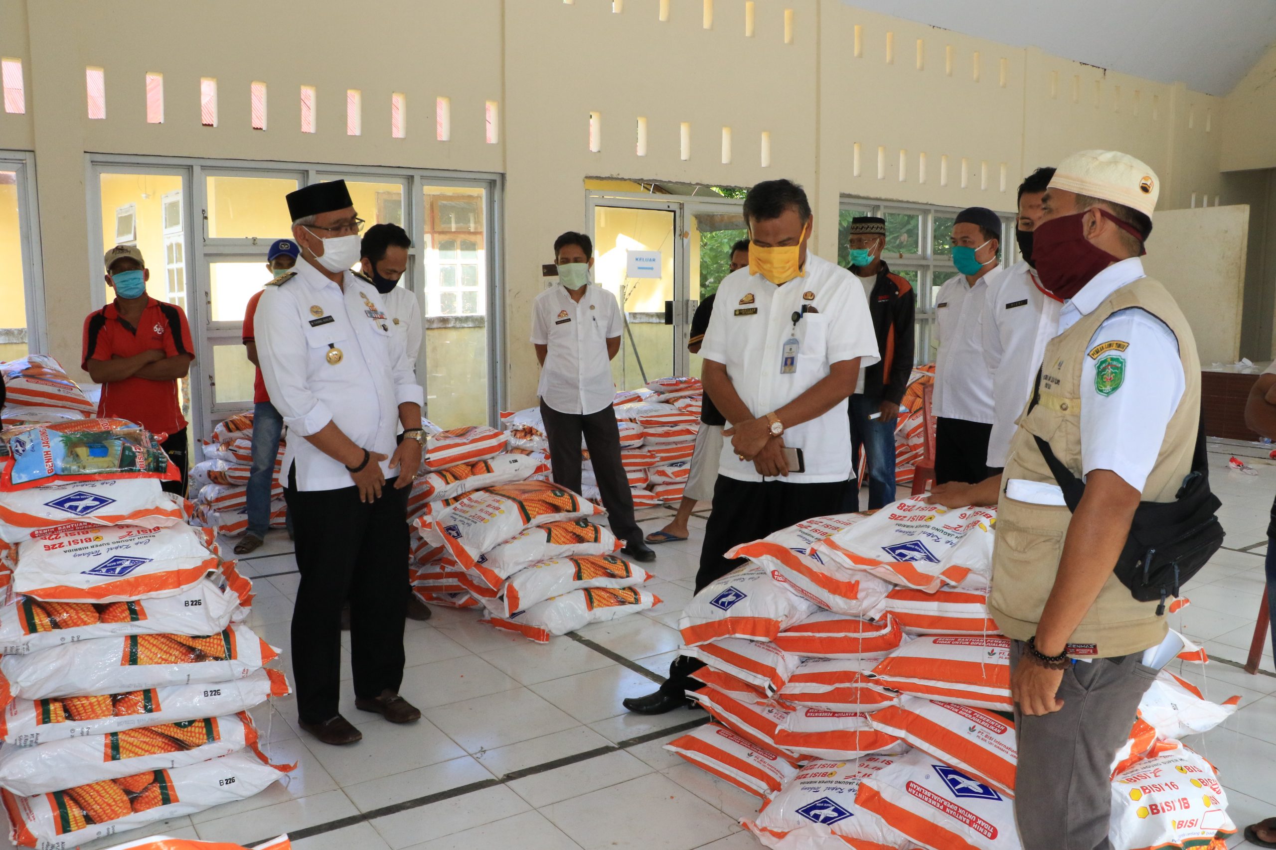 Pendistribusian Benih jagung dipantau langsung Bupati Luwu Timur, H. Muhammad Thoriq Husler didampingi Plt. Kadis Pertanian, Amrullah Rasyid dan Kepala Desa Maliwowo, Hasdar di Aula Kantor Desa Maliwowo, Rabu (29/4/2020).