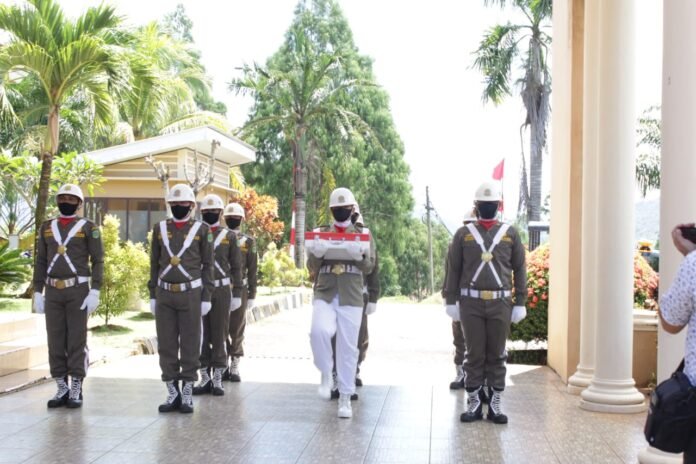 Luwu Timur, batarapos.com – Bupati Luwu Timur, H Budiman kembali menerima Bendera Merah Putih usai dibentangkan dibawah laut Tanjung Parasulu Desa Harapan Kecamatan Malili, Senin (16/08/2021) di Rujab Bupati.