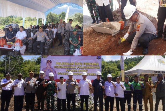 Prosesi peletakan batu pertama dilakukan oleh Kapolres Morowali Utara dan dilanjutkan oleh unsur Forum Koordinasi Pimpinan Daerah (Forkopimda) yang hadir sebagai tanda dimulainya pembangunan Kantor Polsubsektor Petasia Barat.