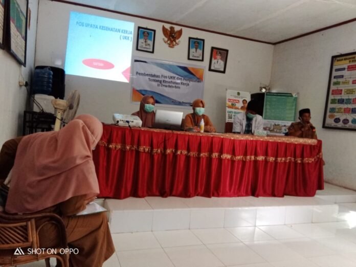 Luwu Timur, batarapos.com – Pembentukan Pos upaya kesehatan Kerja (UKK) sekaligus penyuluhan kesehatan kerja oleh Puskesmas Wotu yang membidangi kesehatan lingkungan.