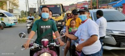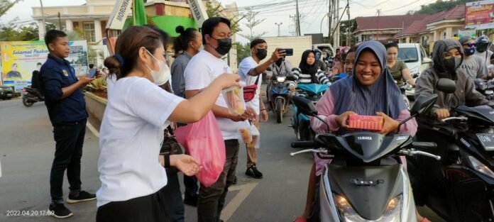 Morut, batarapos.com – Pemda Morowali Utara (Morut) bersama dengan sejumlah jurnalis yang ada di Morut, menggelar pembagian Takjil secara gratis, bagi pengguna jalan yang melintas di depan bundaran Rumah Jabatan (Rujab) Bupati Morut, Rabu (20/4/2022).