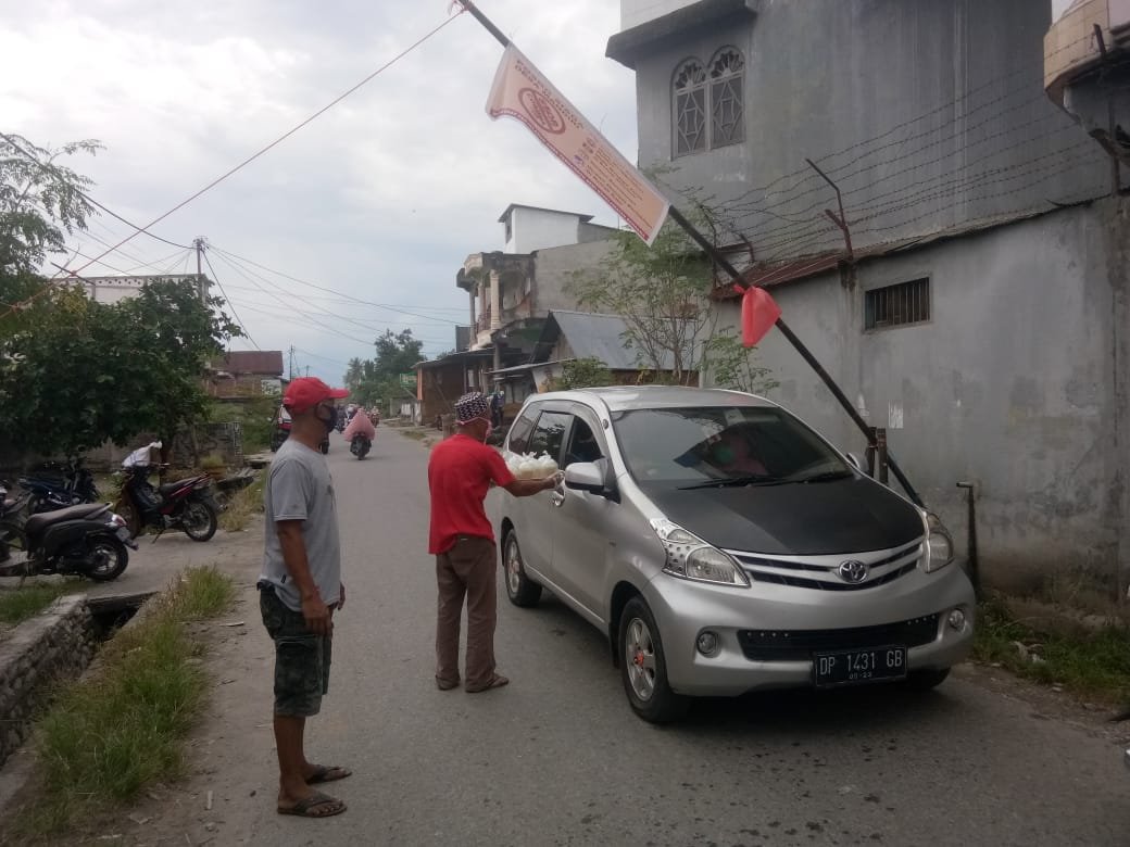 Bagi takjil ini dilakukan di perbatasan masuk Desa Mandiri, lebih tepatnya di posko satu Jalur Covid-19 Desa Mandiri, Minggu (3/5/2020).