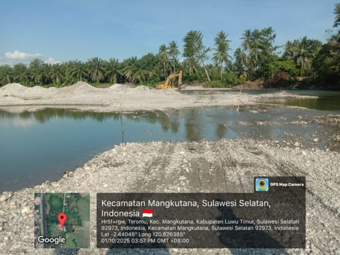 Luwu Timur, batarapos.com – Alat berat Excavator yang digunakan menambang di sungai Kalaena, kecamatan Mangkutana disebut-sebut milik oknum Polisi.