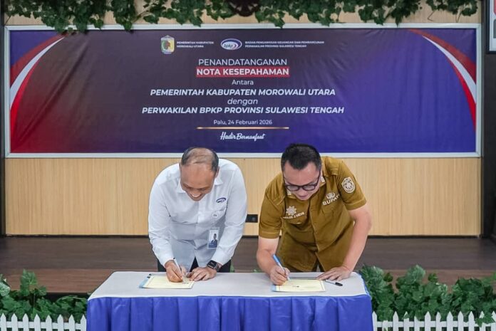 Palu, batarapos.com – Sinergi antara Pemerintah Kabupaten Morowali Utara dan Badan Pengawasan Keuangan dan Pembangunan (BPKP) semakin diperkuat dalam rangka memperkokoh tata kelola keuangan dan pembangunan daerah. Penguatan tersebut ditandai dengan penandatanganan nota kesepahaman (MoU) antara Pemkab Morowali Utara dan BPKP Perwakilan Provinsi Sulawesi Tengah yang berlangsung di Aula Graha Audita BPKP Sulteng, Palu, Selasa pagi (24/2/2026).