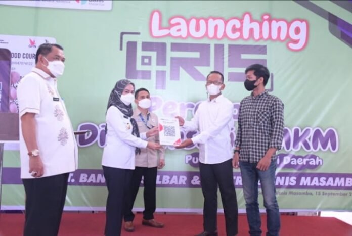 Dengan menggandeng Sentra Bisnis Masamba, maka dilakukanlah Launching QR Code Indonesian Standard (QRIS) dengan menyasar Pelaku UMKM Sentra Bisnis Masamba melalui penggunaan QRIS, Rabu (15/9/2021), di Gedung Sentra Bisnis Masamba.