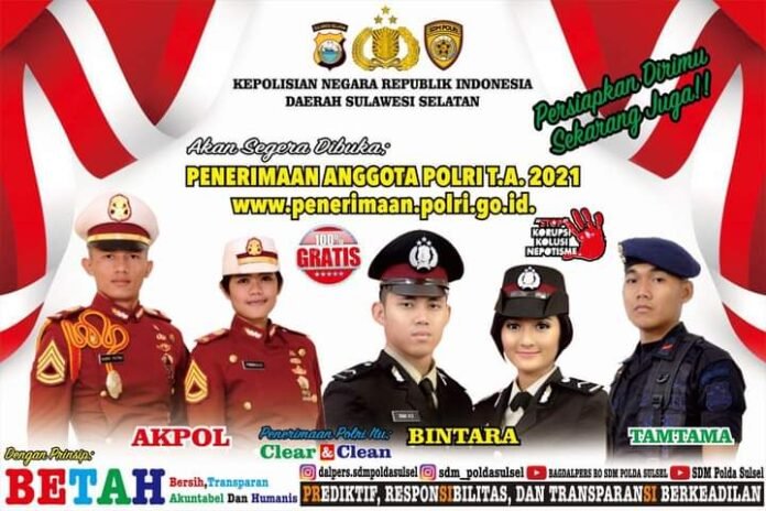 Kabag Sumda Polres Bone selaku panitia mengutarakan, rekrutmen anggota Polri tahun 2021 mendatang meliputi Akpol, Bintara, Tamtama dan pendaftaran nantinya akan dilakukan secara online melalui website penerimaan.polri.go.id. (Yusri)