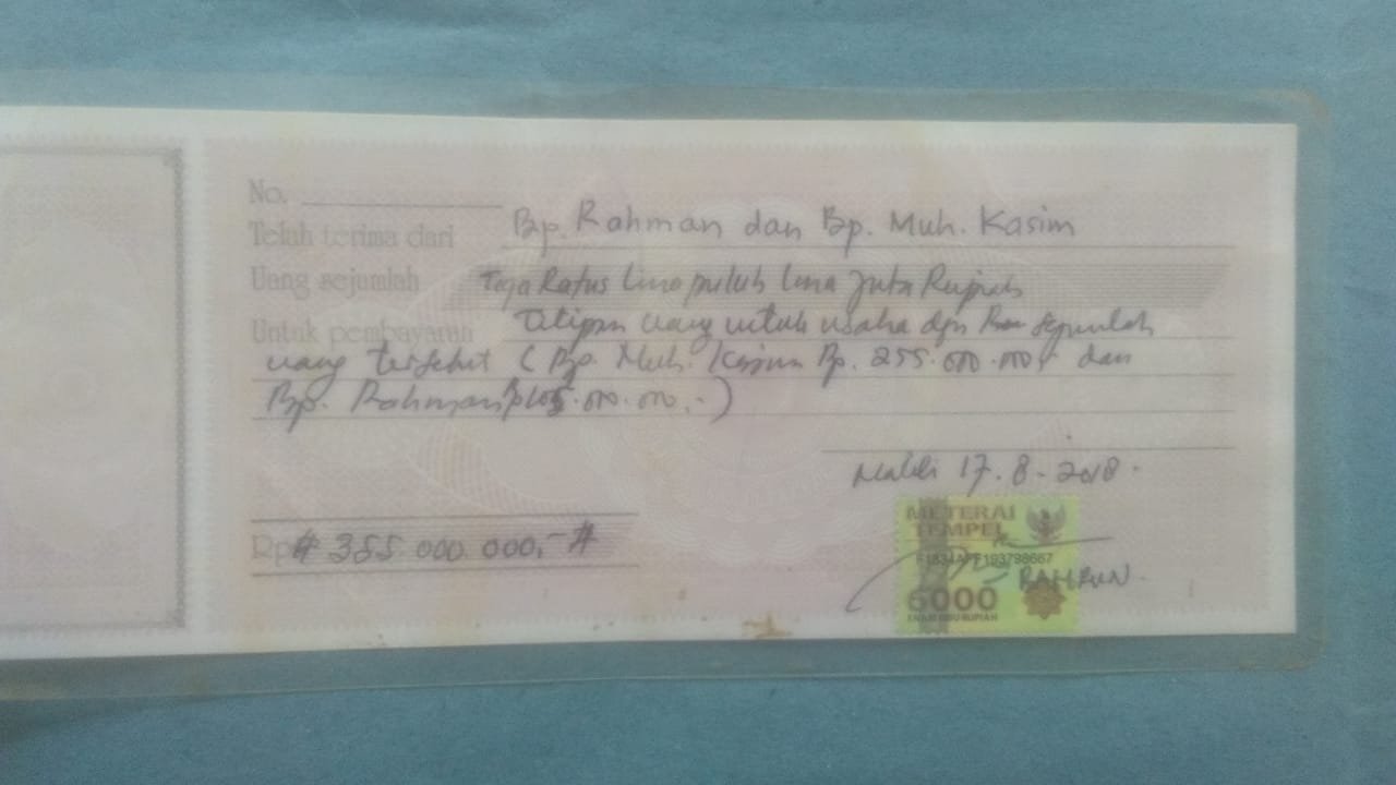 Dengan janji yang menggiurkan saya dan Raman menginvestasi masuk dana tersebut dengan bukti kwitansi pemberian dana sekitar 360 juta dan siap diproses.