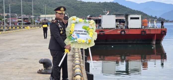 Morowali Utara, batarapos.com – Dalam rangka memperingati Hari Pahlawan Nasional, Polres Morowali Utara melaksanakan Upacara Tabur Bunga di Pelabuhan Kolonodale, Kecamatan Petasia, Senin (10/11/2025).