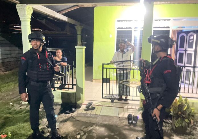 Palopo, batarapos.com – Personel Pos Pengamanan Mancani Batalyon D Pelopor Satuan Brimob Polda Sulawesi Selatan, gelar kegiatan Patroli Malam dan Sambang Warga pada hari, Senin 12 Januari 2026, pukul 21.00 WITA.