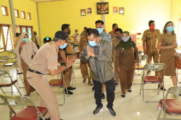 Luwu Timur, batarapos.com – Penjabat Sementara (Pjs) Bupati Luwu Timur, Jayadi Nas, didampingi Kepala BPBD, Muhammad Zabur, Kepala DPMD, Halsen, Kadis Kesehatan, dr. Rosmini Pandin dan Kadis Pertanian, Amrullah Silahturahmi dan tatap muka dengan Kepala Desa dan BPD di Aula Kantor Camat Mangkutana, Selasa (27/10/2020).