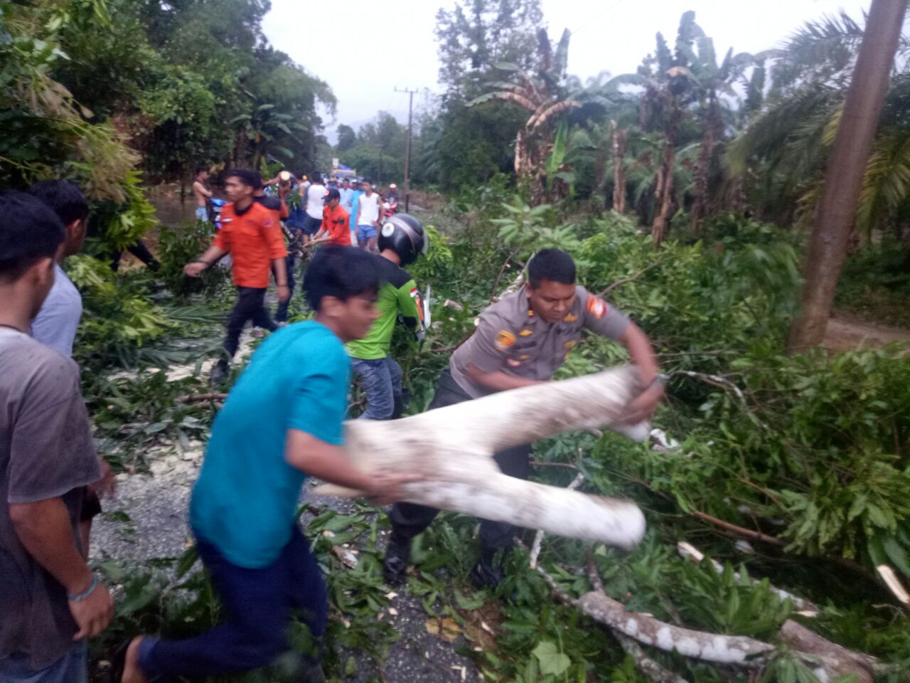 Pada kesempatan tersebut Kapolsek Baebunta bersama personil Polsek Baebunta, Sat Lantas polres Luwu Utara dan Personil BNPB Luwu Utara serta Camat Baebunta dan Masyarakat sekitar TKP membantu membersihkan Pohon yang tumbang tersebut agar arus lalin berjalan lancar dan aman.