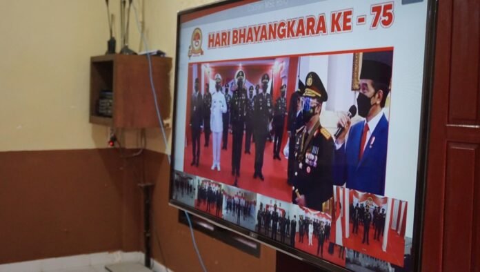 Luwu Timur, batarapos.com – Kegiatan Upacara Peringatan Hari Ulang Tahun (HUT) Bhayangkara ke-75 tahun 2021 diselenggarakan secara terpusat melalui virtual atau live streaming dari Istana Merdeka, Jakarta, dengan Presiden Joko Widodo sebagai Inspektur Upacara, Kamis (1/7/2021).