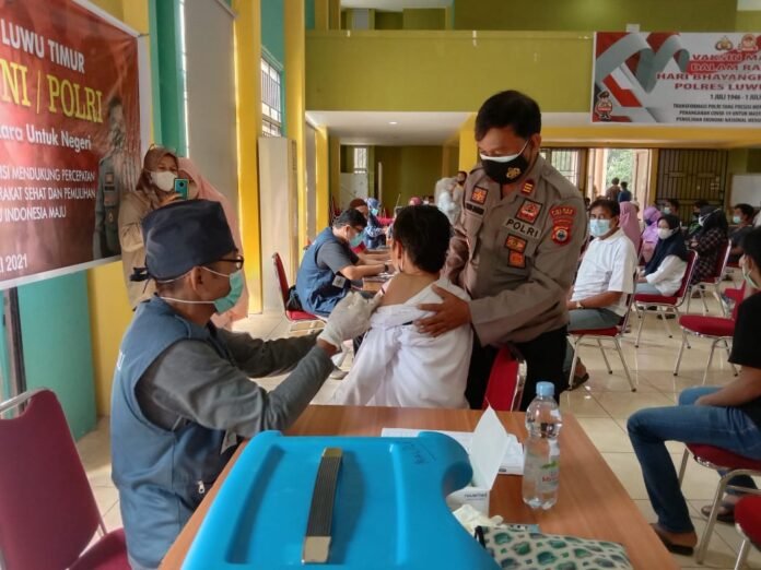Luwu Timur, batarapos.com – Kepolisian Sektor (Polsek) Malili menggelar kegiatan vaksinasi presisi di Kantor gedung Simpurusiang kecamatan Malili Kabupaten Luwu Timur, Jum’at (23/7/21).