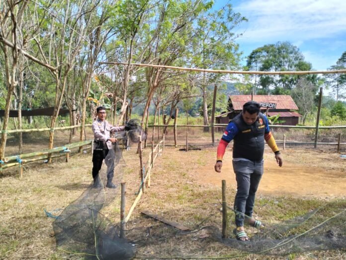 Polsek Towuti yang menerima laporan dari masyarakat terkait adanya arena judi sabung ayam yang siap digunakan langsung menuju ke titik arena.