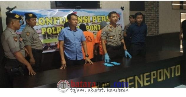 Jeneponto, batarapos.com – Kasubag Humas Polres Jeneponto AKP Syahrul, SH didampingi Kasat Narkoba Polres Jeneponto AKP Abd Majid, S.Sos serta KBO Narkoba Ipda Paulus, SE serta Paur Humas Aiptu Suryanto melaksanakan konferensi Pers dengan awak media Mitra Humas Polres Jeneponto Rabu, di Aula LT I Mapolres Jeneponto. Rabu (26/2/2020) Pukul 14.15 Wita.