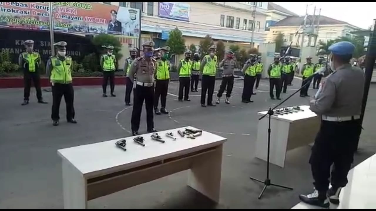 Gowa, batarapos.com – Bertempat di lapangan apel Polres Gowa, seluruh personel Satuan Lalu lintas Polres Gowa yang memiliki senjata api (senpi) organik telah dilakukan pemeriksaan oleh Propam Polres Gowa yang dipimpin langsung oleh Kasi Propam Iptu Isyamsah. Rabu (3/6/2020) pukul 07.30 Wita.