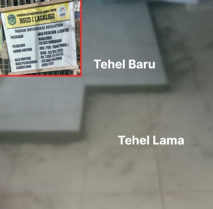 Proyek Rp. 2,6 Miliar RSUD I Lagaligo Disorot, Diduga Pasang Tehel di Atas Tehel ?