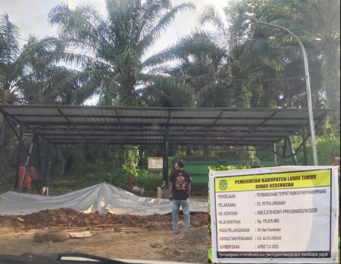 Luwu Timur, batarapos.com – Proyek tempat parkir kendaraan Puskesmas Parumpanai, kecamatan Wasuponda, kabupaten Luwu Timur disorot warga.
