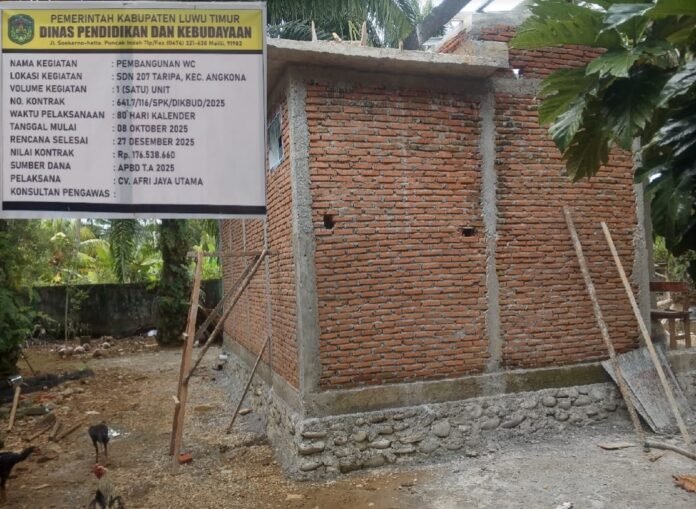 Luwu Timur, batarapos.com – Proyek WC di SDN 207 Taripa kecamatan Angkona, kabupaten Luwu Timur bikin melongo.