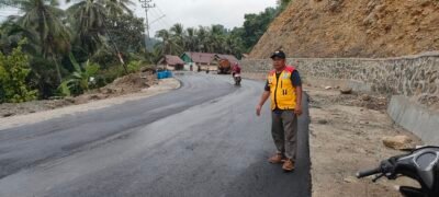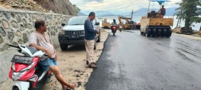 Sementara ini pekerjaan sudah masuk tahap finishing dengan konstruksi Aspal Hotmix jenis ACBC dengan panjang ruas 225 meter, dengan lapisan 4 ACWC kepadatan total 6 sentimeter setelah dipadatkan,” ujar Ikbal.