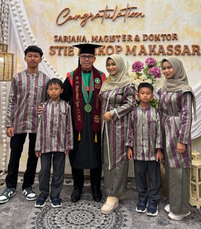 Makassar, batarapos.com – Sebuah capaian membanggakan kembali lahir dari jajaran Kepolisian Resor (Polres) Luwu Utara. Muhammad Agus, seorang perwira Polri yang bertugas di Polres Luwu Utara, berhasil menuntaskan studi Strata Tiga (S3) Program Doktor Ilmu Manajemen di Sekolah Tinggi Ilmu Ekonomi (STIE) AMKOP Makassar dan meraih predikat sebagai lulusan terbaik dengan Indeks Prestasi Kumulatif (IPK) tertinggi di angkatannya, yakni 3,97.