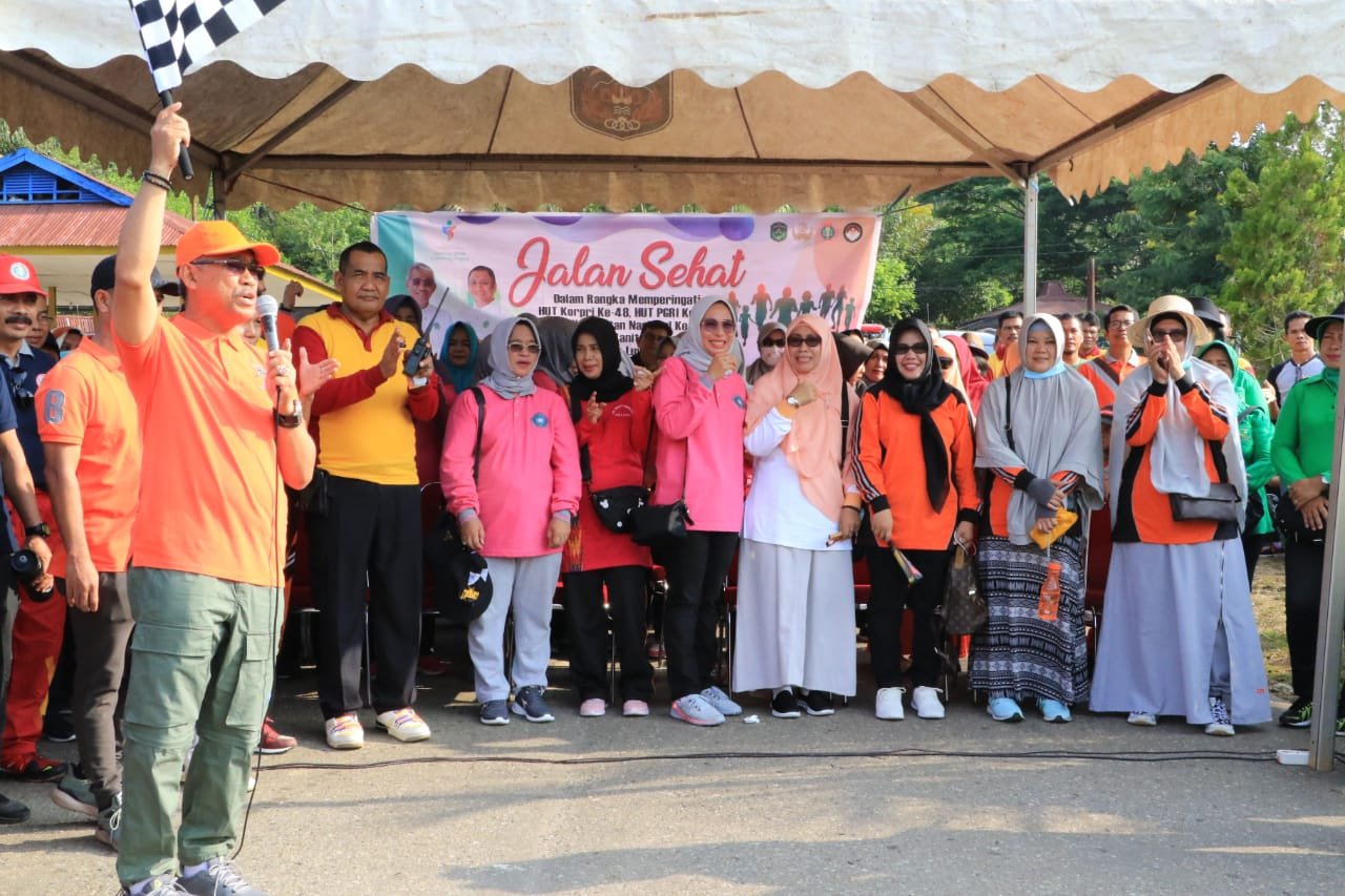 Jalan sehat yang dilepas oleh Bupati Luwu Timur, H. Muhammad Thoriq Husler, selain diikuti oleh Kepala OPD dan PNS lingkup Pemerintah Kabupaten Luwu Timur, Anggota Dharma Wanita, juga diikuti oleh pelajar dan masyarakat.