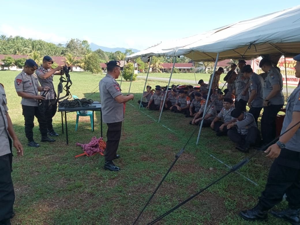 Latihan tesebut dipimpin langsung oleh Danki Brimob AKP Laode didampingi Kasat Sabhara AKP Abubakar, sebelumnya pelatih memberikan arahan dan materi pelatihan SAR, antara lain, pengenalan alat SAR, Tali temali, Refling, Evakuasi korban dan penyebrangan sungai.