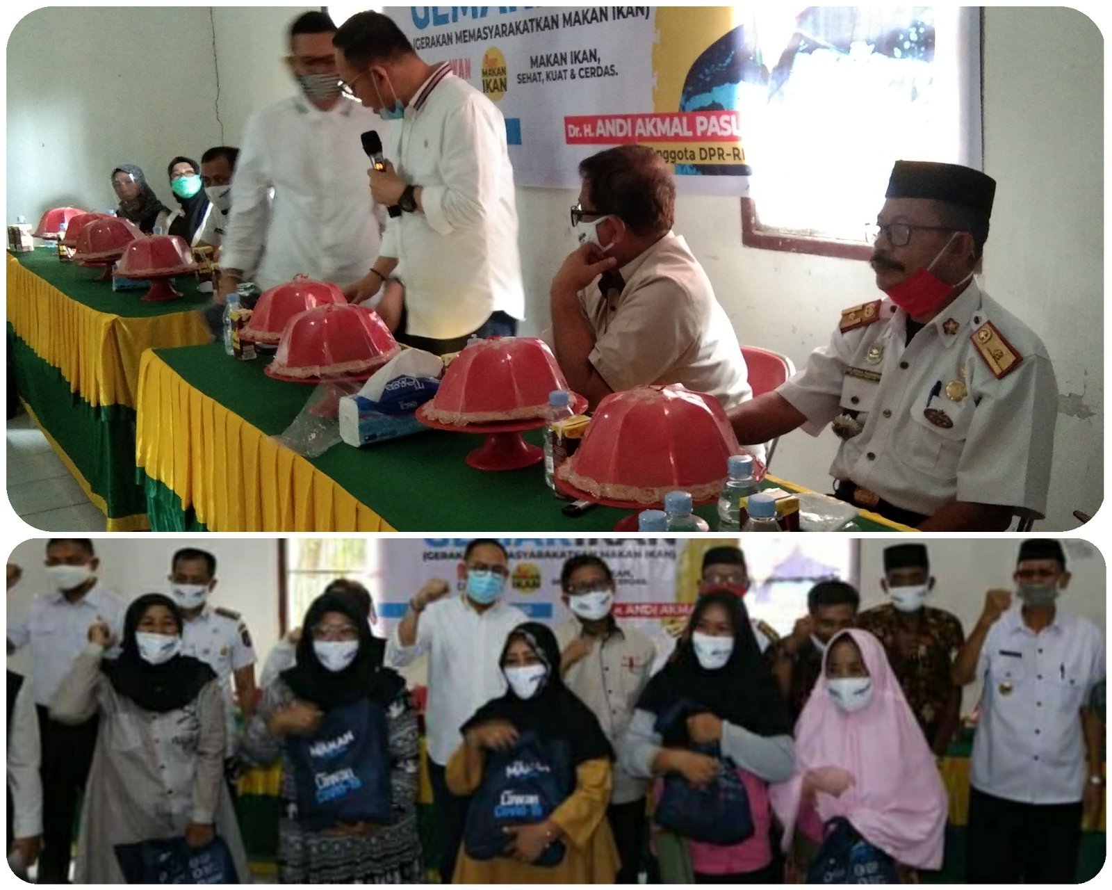 Dipenghujung kegiatan safari Gemarikan tersebut Andi Akmal Pasluddin bersama rombongan juga membagikan bingkisan olahan ikan dalam bentuk kemasan kepada warga Kecamatan Bengo.(Yusri)
