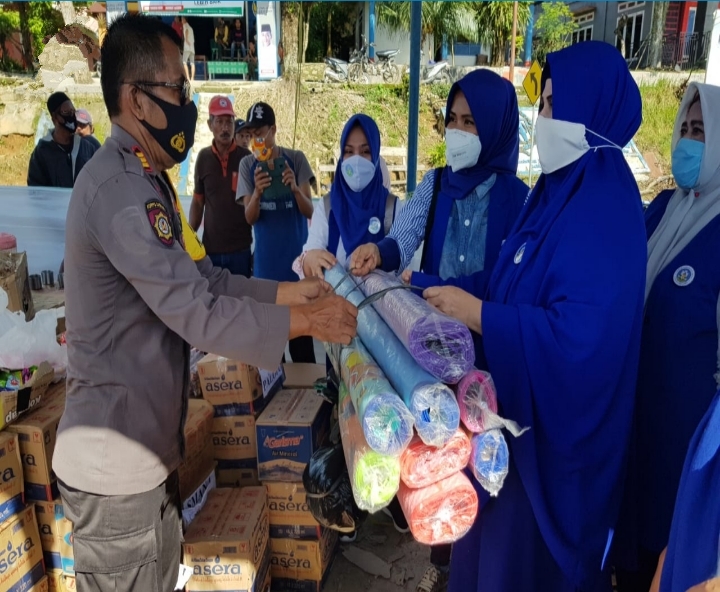 Ditempat yang sama, Hj Hayarna Basmin menyalurkan bantuan logistik ke posko induk BPBD kabupaten Luwu dan dapur umum yang didirikan oleh Tagana Dinas Sosial.