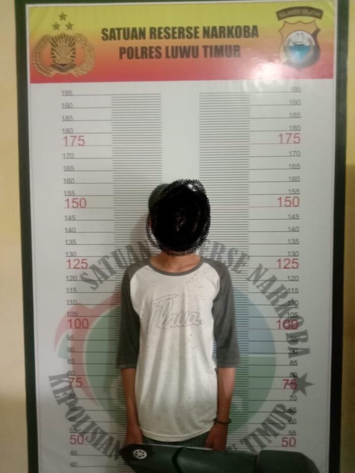 Satuan Reserse Narkoba Polres Luwu timur berhasil mengamankan seorang pria berinisial IP (19) Warga desa harapan kecamatan Malili Kabupaten Luwu Timur,