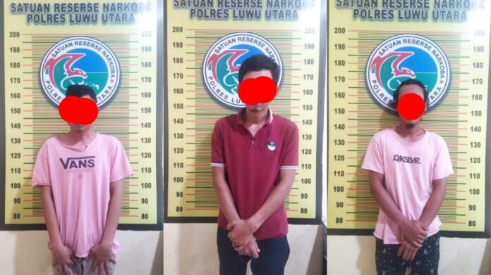 Luwu Utara, batarapos.com – Satuan Narkoba Polres Luwu Utara bersama Polisi Sektor (Polsek) Sukamaju, amankan 3 orang penyalahgunaan Narkoba jenis Sabu. di Desa Sukamaju, Kecamatan Sukamaju, Kabupaten Luwu Utara, Kamis (2/9/2021) lalu.
