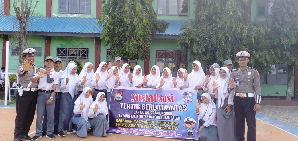 Satlantas Polres Luwu Utara Unit Dikyasa dan Kamsel berkunjung sekitar pukul 07.15 Wita, ke sekolah dengan melaksanakan sosialisasi tertib berlalu lintas di usia Milenial kepada pelajar, siswa dan siswi SMA Negeri 1 Masamba.