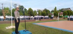 Kasat Lantas Polres Luwu Utara AKP Syarifuddin didampingi Aiptu Made Sunaya, Bripka Amran dan Bripda Aguswan memberikan arahan mengenai tata cara tertib berlalulintas kepada peserta upacara siswa/siswi SMA Negeri 1 Masamba yang berjumlah 750 orang.