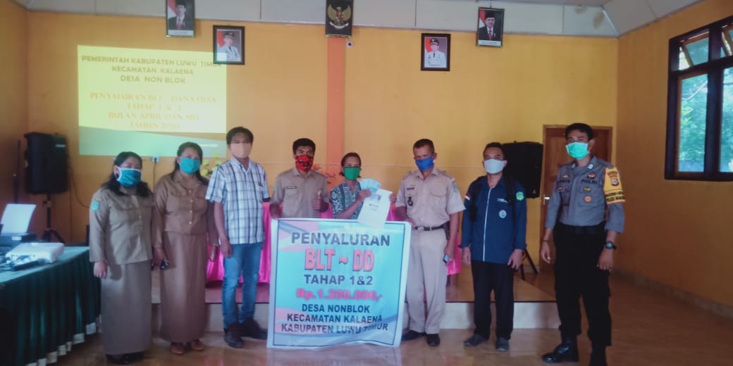 Adapun yang hadir menyaksikan penyerahan Bantuan Langsung Tunai tersebut, Camat Kalaena (Alimuddin Bachtiar), Kades Nonblok (Suryadi), Ketua BPD (Daniel palik datu), Bhabinkamtibmas (Aris), Pendamping desa (Wilson, Khaeruddin) dan Para penerima BLT DD.