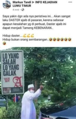 Luwu Timur, batarapos.com – Viral… Salah satu akun Facebook Markus Tandi dicari Umat Muslim, hal ini disinyalir telah membuat keresahan ditengah umat Islam khususnya di kabupaten Luwu Timur.
