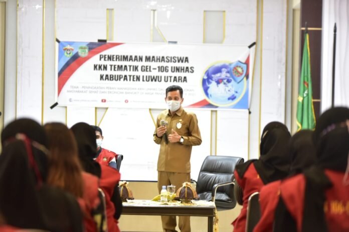 Luwu Utara, batarapos.com – Sekretaris Daerah (Sekda) Kabupaten Luwu Utara, Armiady, menerima 38 mahasiswa Universitas Hasanuddin (Unhas) yang akan melakukan Kuliah Kerja Nyata (KKN) Tematik di Kabupaten Luwu Utara, Selasa (29/06/2021) kemarin, di Aula La Galigo Kantor Bupati.